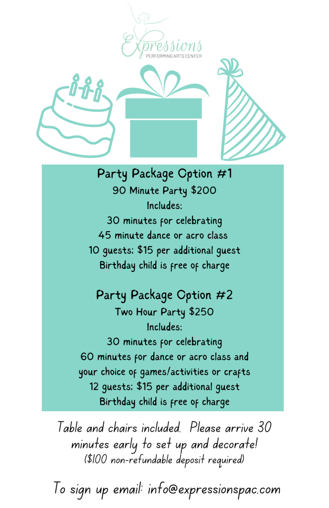 Come check out Expressions Performing Arts Center and our birthday packages.