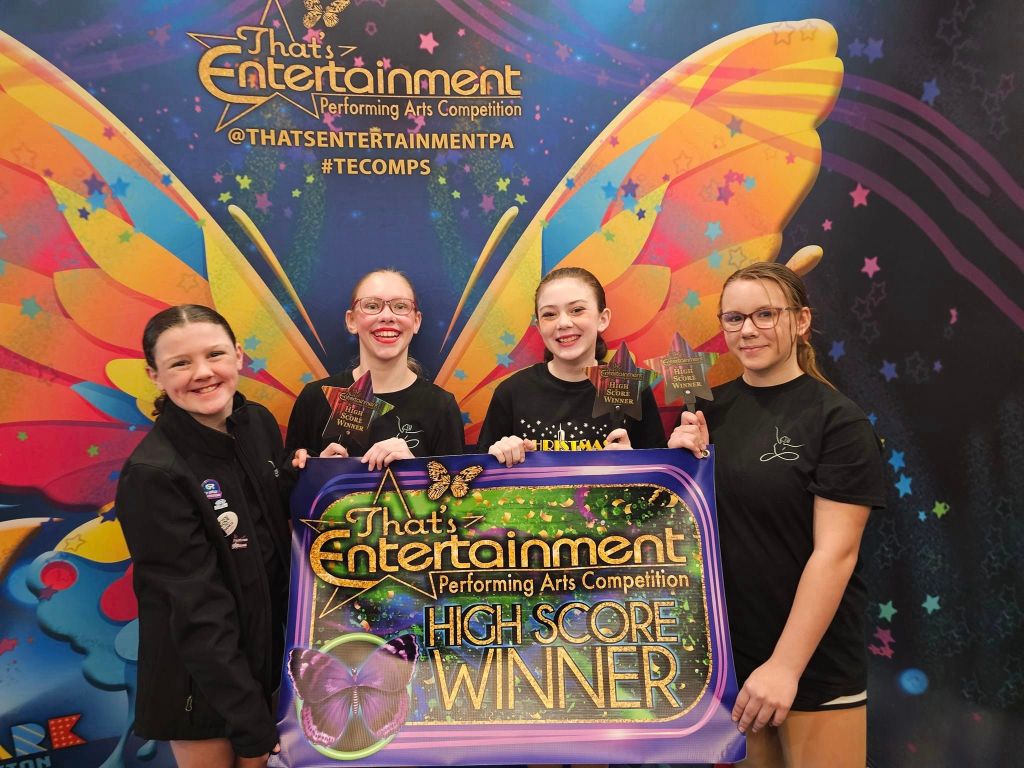 CONGRATULATIONS to our BELIEVE Team for winning Entertainer of the Year Nominee, Top High Scoring Performance in the 10-12 age group for small groups, and TOP OVERALL Scoring Performance in the Entire Rising Stars Division of the That’s Entertainment Performing Arts Competition held in Lancaster, PA in March 2024!!! — NATIONALS held in Atlantic City, NJ — Scored 1st Place and TITLE for Top High Scoring Musical Theatre Performance in the Rising Star Division!!