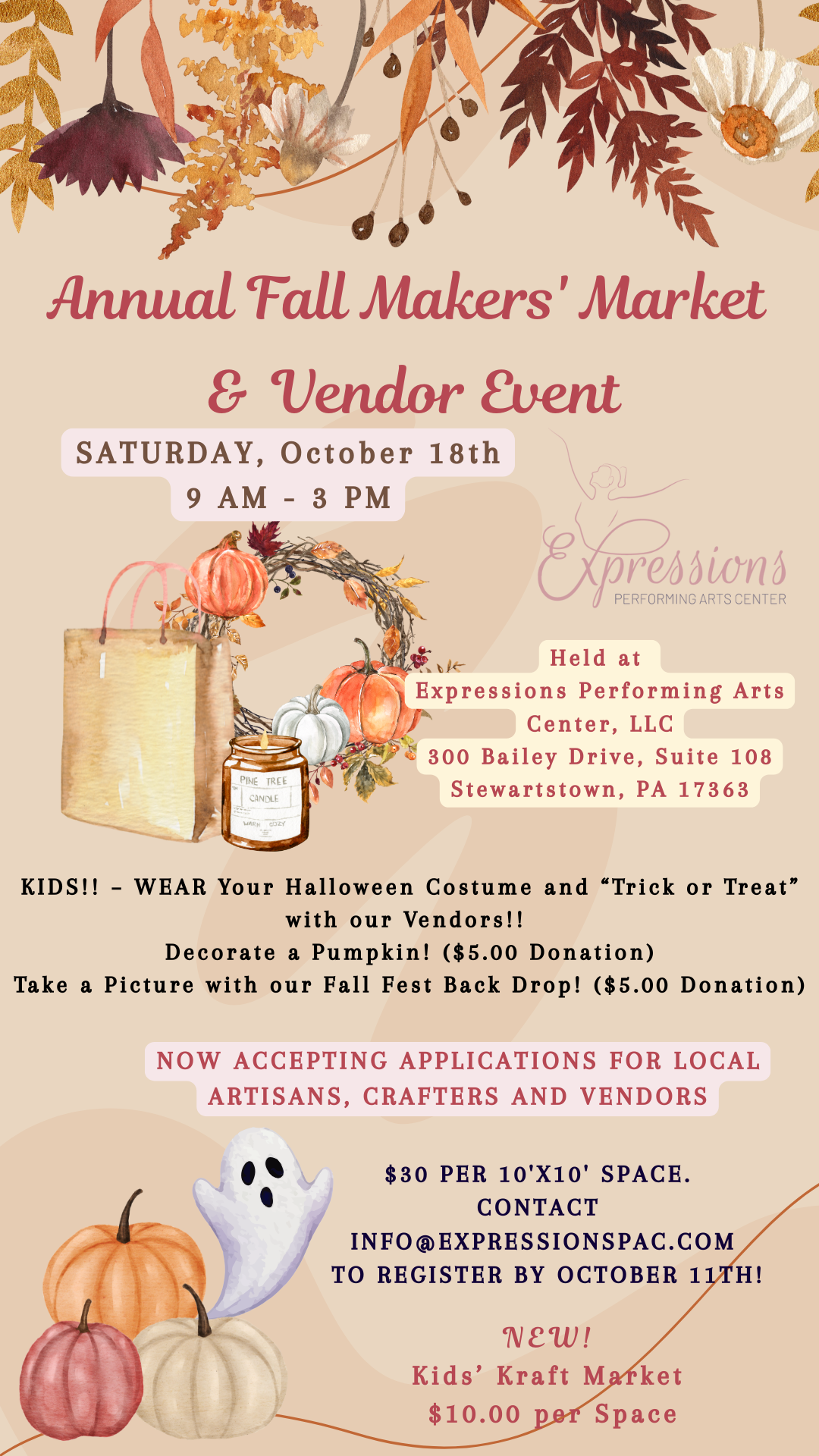 Contact us Today at info@expressionspac.com for Vendor and Makers Market inquiries and info! We look forward to celebrating and sharing your business!