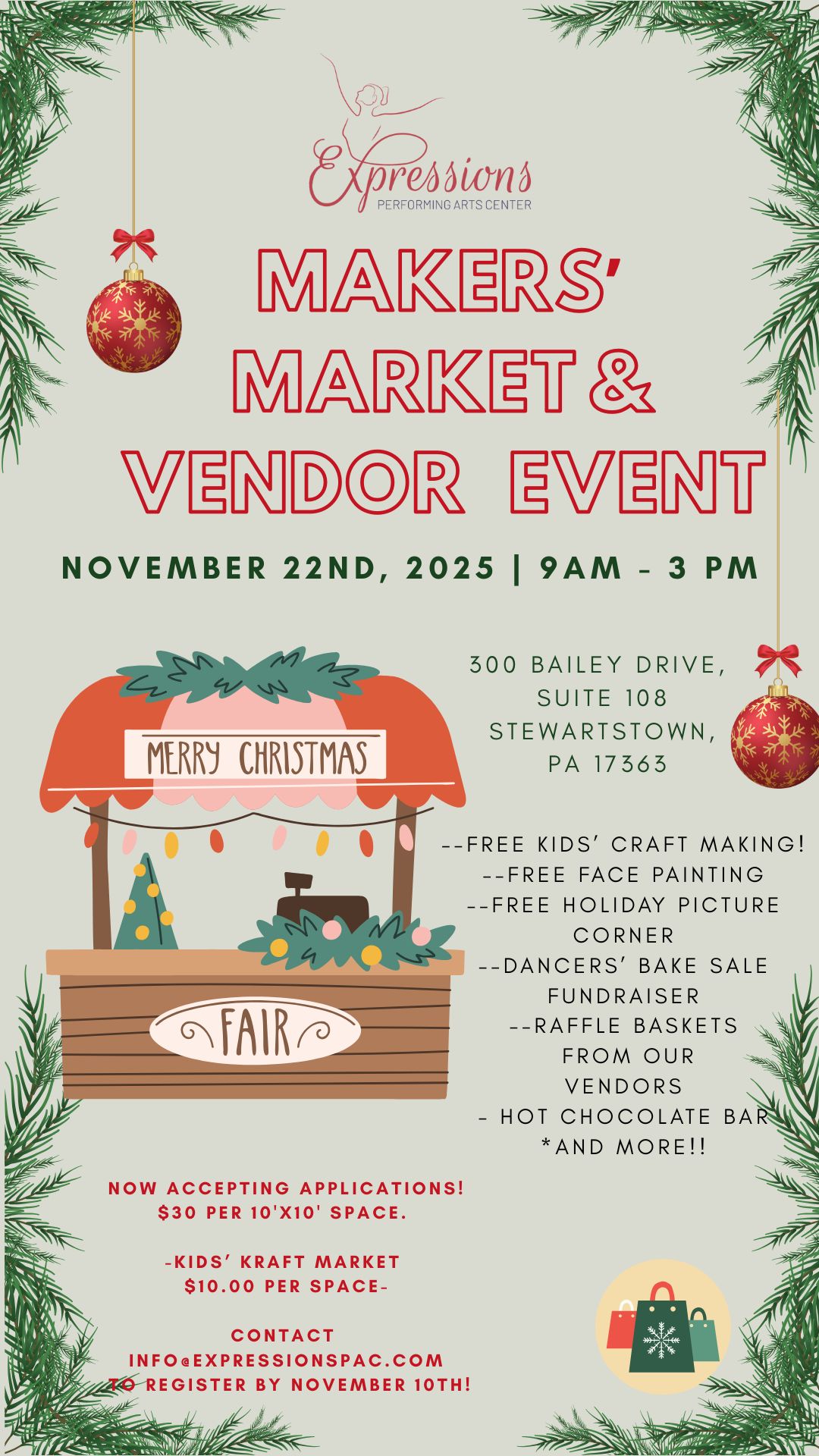 We would LOVE to have you join us so we can share about your makes, vends and businesses with the local community! — Join us for a day of shopping Fun while supporting the dance and performing arts world in the community!!