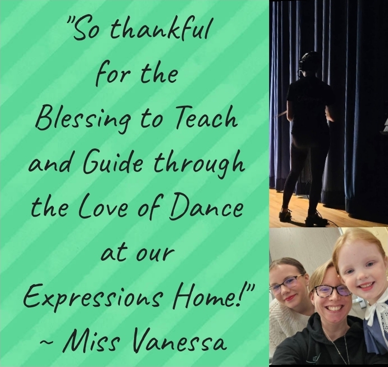 Hello! I’d like to personally welcome you to Expressions Performing Arts Center! I am excited to have you meet our friendly teachers and staff. They are each so talented in what they do, and love creating a warm and welcoming environment for all students and their families and friends alike. I can’t say enough how blessed I am to have the opportunity to share our Expressions studio with such top notch individuals! They truly go above and beyond in their teaching, guidance, knowledge & skill growth, support and caring for our students and families within our Expressions walls, as well as throughout our local communities and beyond. Let me introduce you to our Expressions Staff — just a small glimpse of what enthusiastic and positive people we have waiting to meet you! ~ Vanessa Smith (Director/Owner)