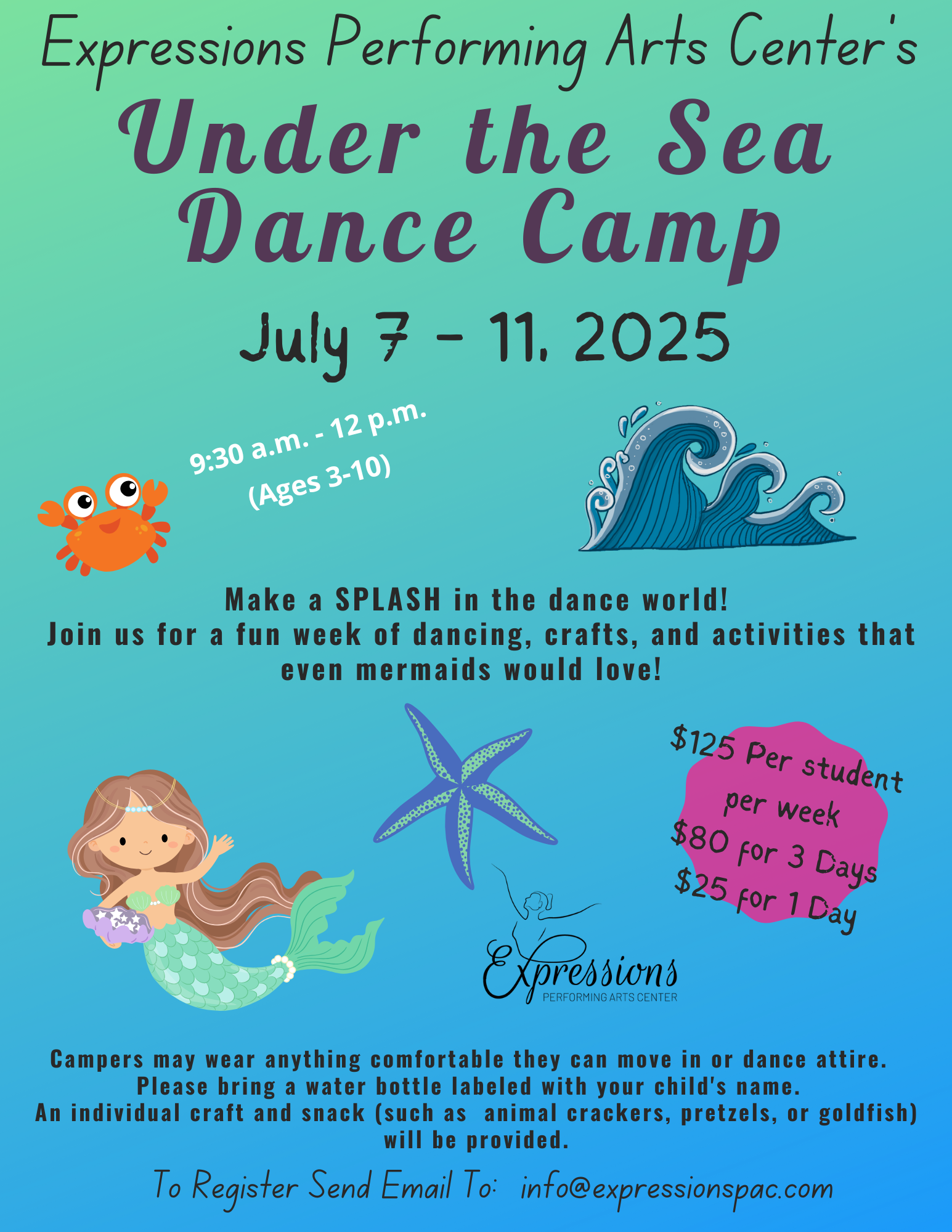 We are EXCITED to share that we have our Summer Dance Camps available for you to check out and sign up for starting May 5th! Email us at info@expressionspac.com for more information and/or to be added to our Summer Camp 2025 contact list!